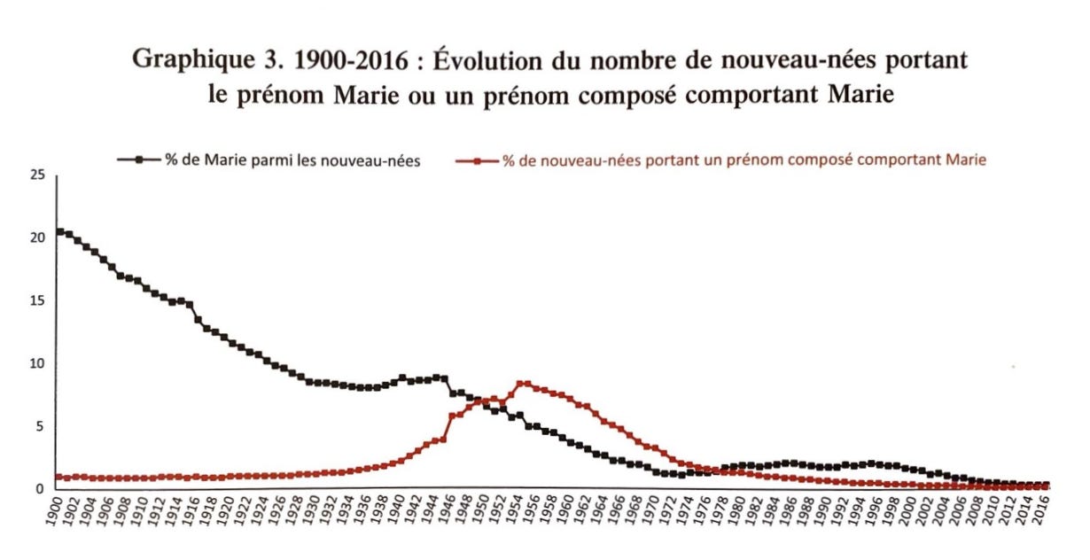 Prendiamo il nome Maria. A inizio Novecento, circa una bambina su cinque si chiamava così. È un segno evidente dell’influenza della cultura cattolica e dell’omogeneità della società, perché i nomi che diamo ai nostri figli sono tra le scelte più intime che compiamo in vita. A partire dal secondo dopoguerra, la percentuale decresce sensibilmente, fino a scomparire: tra le bambine nate nel 2016, soltanto lo 0,3% si chiama Maria. Non solo, a inizio Novecento, i francesi utilizzavano circa 2.000 nomi: segno, appunto, di una società relativamente omogenea. Oggi i nomi propri utilizzati sono più di 13mila (in un contesto di relativa diminuzione delle nascite), per effetto dell’immigrazione certo, ma anche per l’affrancamento dalla cultura cattolica dominante.