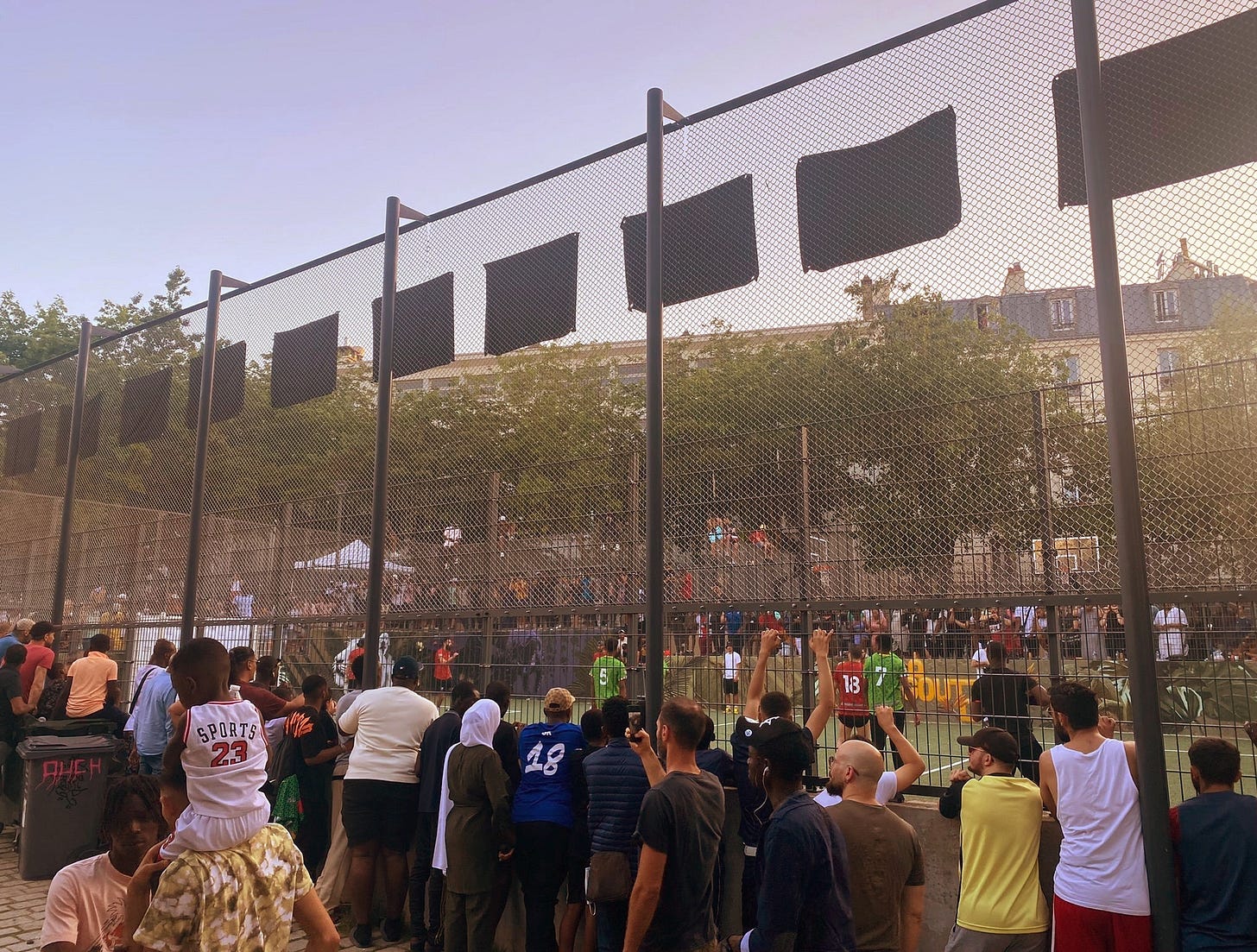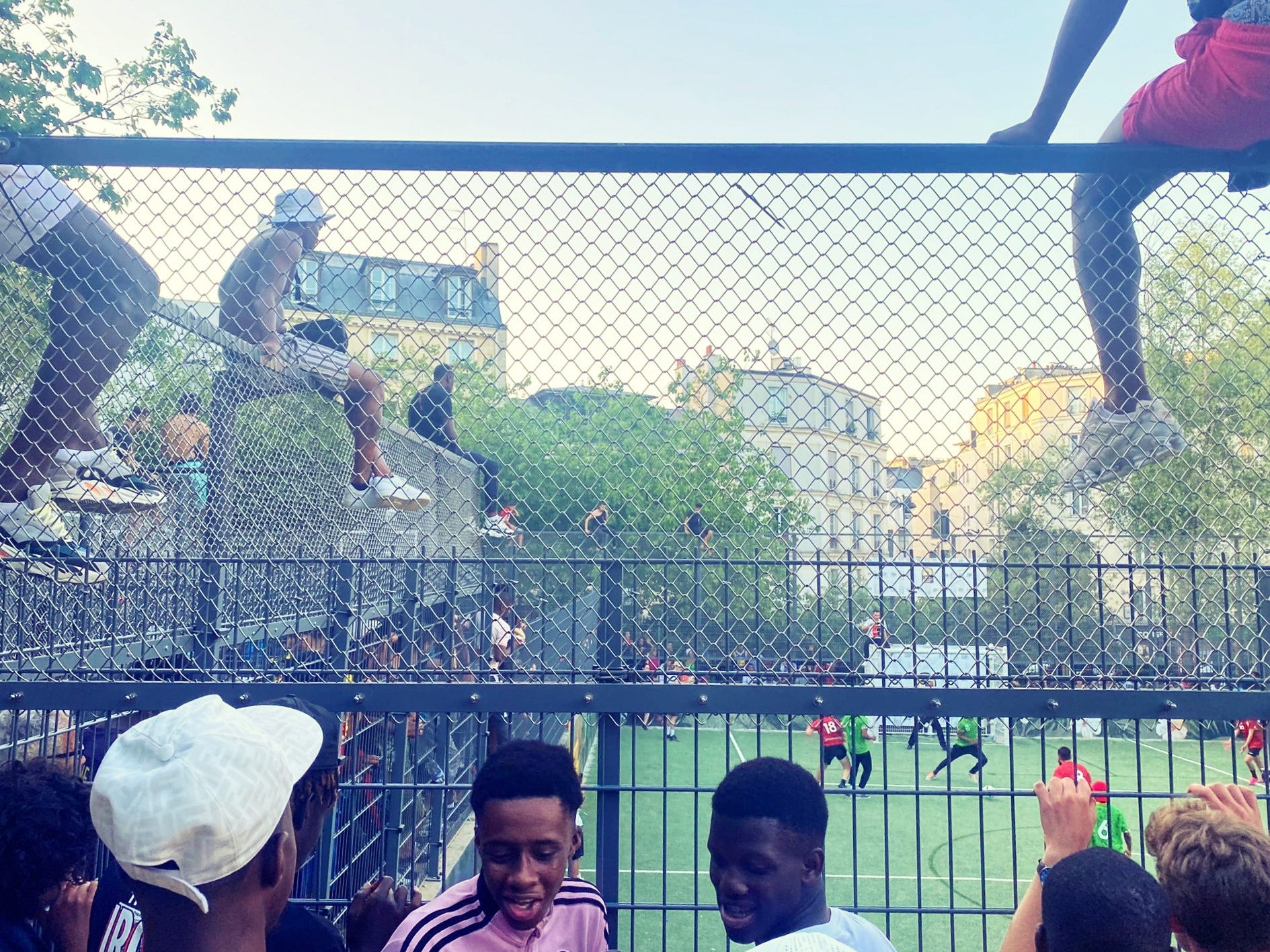 «Volevamo costruire qualcosa di locale, che aiutasse le comunità del quartiere a condividere delle serate di divertimento». A lungo termine, spiega Mamoudou, ci sarà un’associazione che oltre al torneo di calcetto promuoverà e darà una mano a chi vuole sfondare nella propria disciplina. Per questo la regola principale che si sono dati è «lasciare la nostra Can nel quartiere, alla Goutte d’Or, allo square Léon. Altri giocano a calcio a 11, sembra quasi una cosa professionale ed è bellissimo, ma per noi la coppa ha valore se resta nel quartiere e nello stade Léon, dove si gioca a 5. È anche la dimostrazione vivente che tutte queste comunità possono parlarsi». A giudicare dal pubblico e dal contesto, che attira persone tra i venti e i trent’anni, contornati da ragazzini più piccoli (e anche bambini e bambine di meno di dieci anni), l’esperimento funziona eccome, ha l’appoggio dei residenti, ed è un’occasione di pubblicità per i negozi circostanti. La maison Chateau Rouge ha prodotto le magliette di questa edizione, mi spiega con orgoglio Mamoudou: «Siamo quasi dei professionisti», ride.